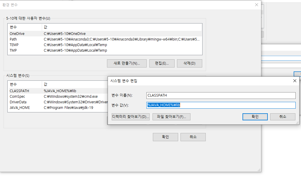 (%JAVA_HOME%의 의미는 위에서 만든 JAVA_HOME 의 값과 같다 C:\Program Files\Java\jdk-19 )