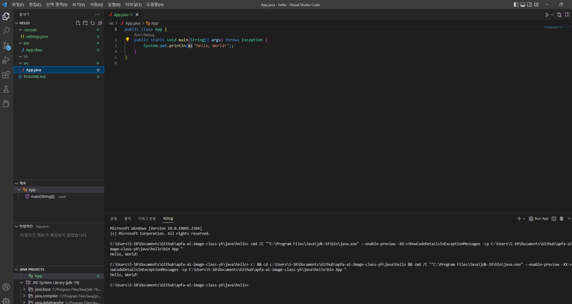 컨트롤 f5를 눌러서 hello 메세지 보기