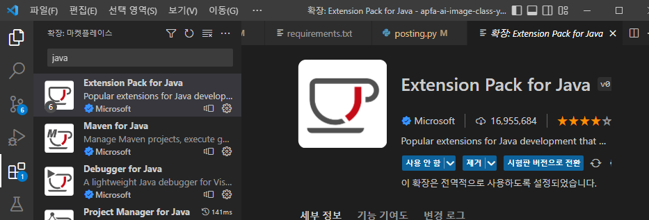 확장팩을 설치하면 자동으로 몇개 더설치됨