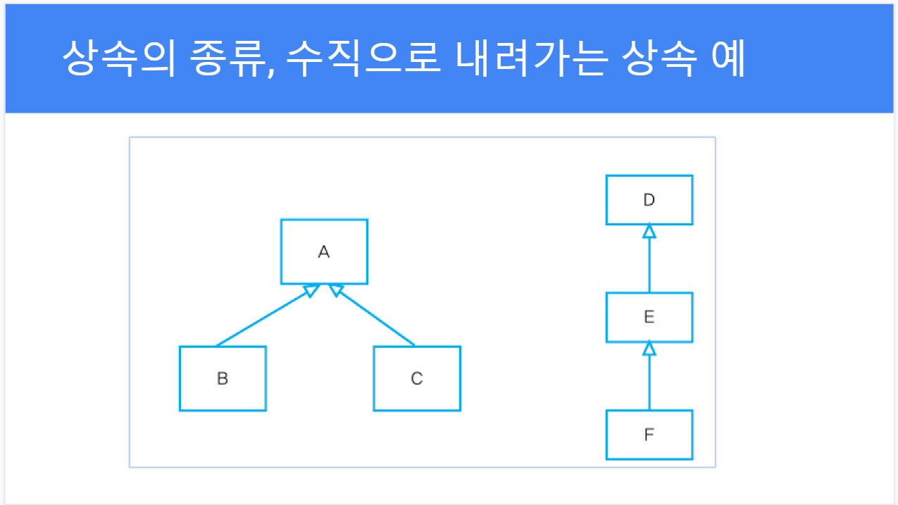 수평상속 : 하나의 부모클래스를 수평적으로 받는자식클래스들