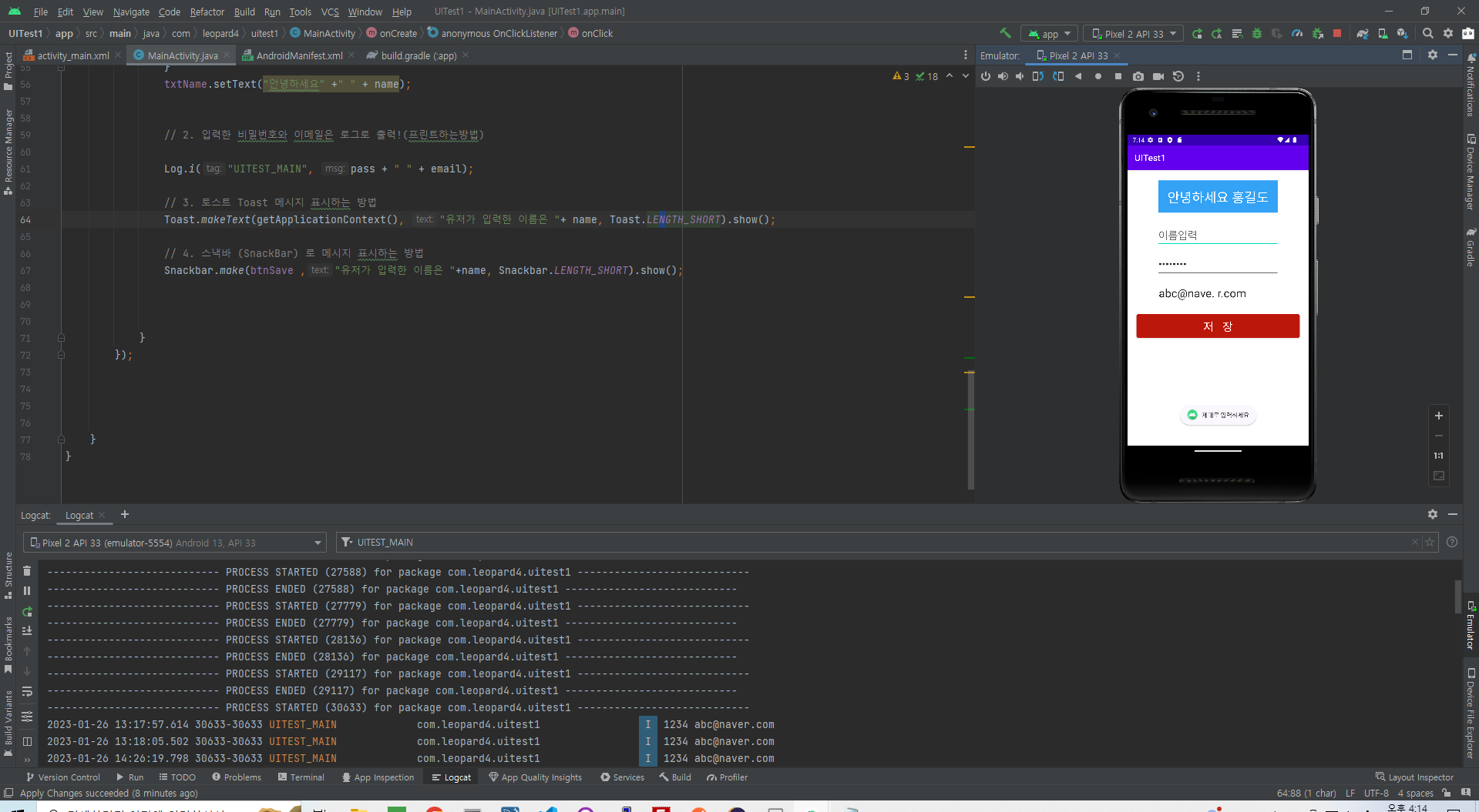 // 3. 토스트 Toast 메시지 표시하는 방법