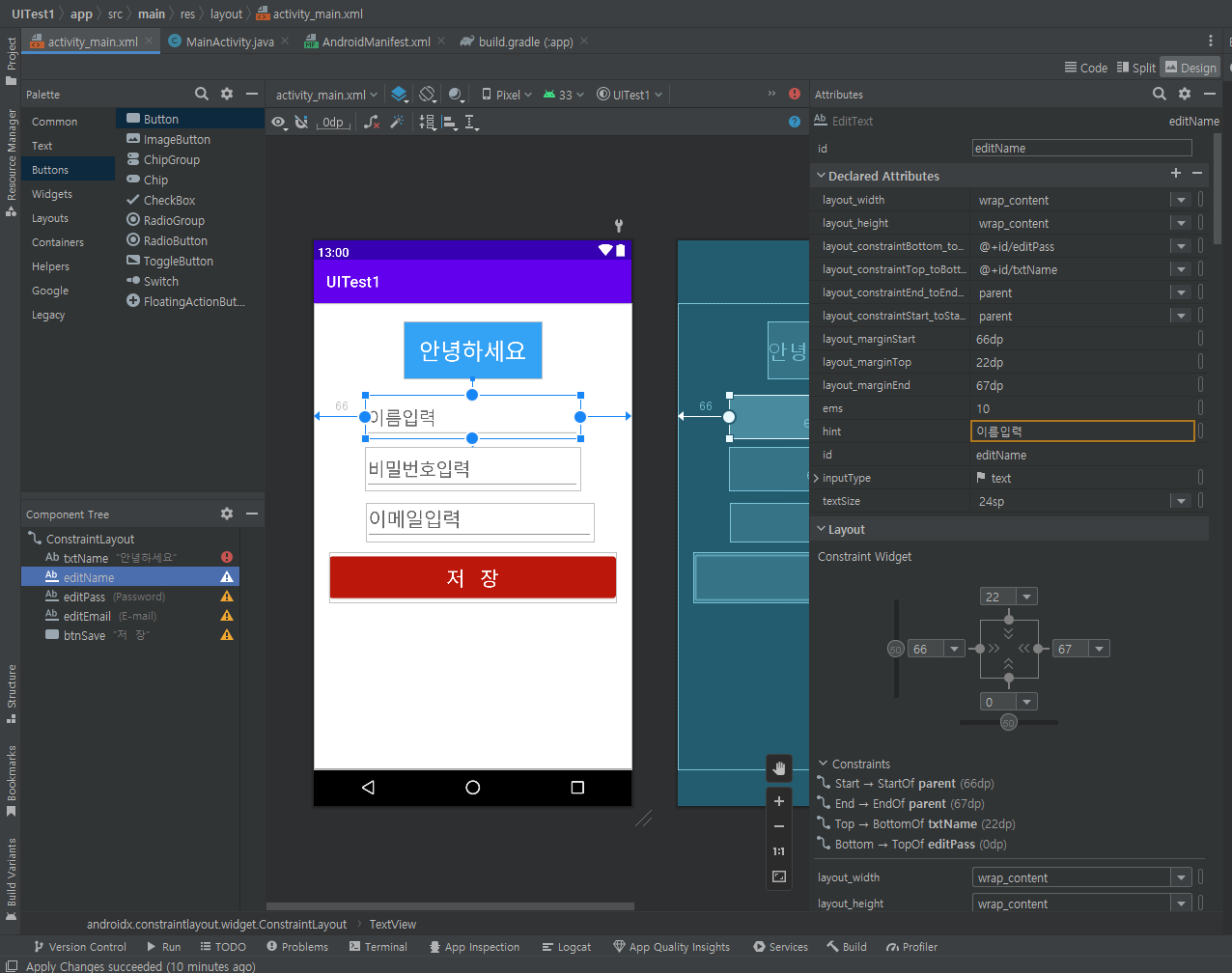 // 1. 입력한 이름을 가져와서 텍스트뷰에 보여준다.