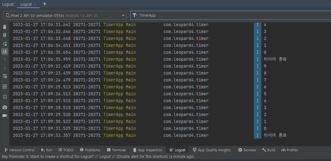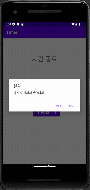 // 타이머가 종료되면, 알러트 다이얼로그 띄워서