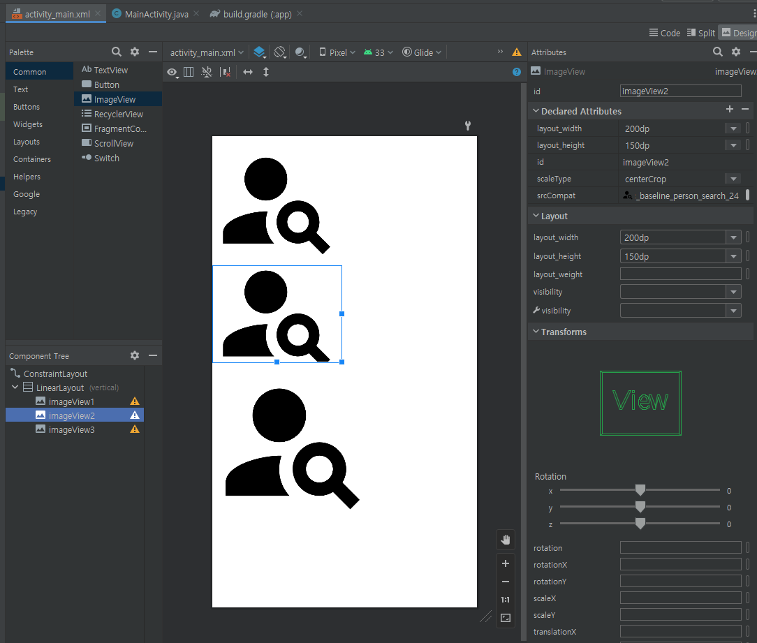 Glide.with(MainActivity.this).load(URL2).placeholder(R.drawable.ic_baseline_person_search_24).into(imageView2); // 사진이 로딩되기 전에 보여줄 이미지를 지정할 수 있다.