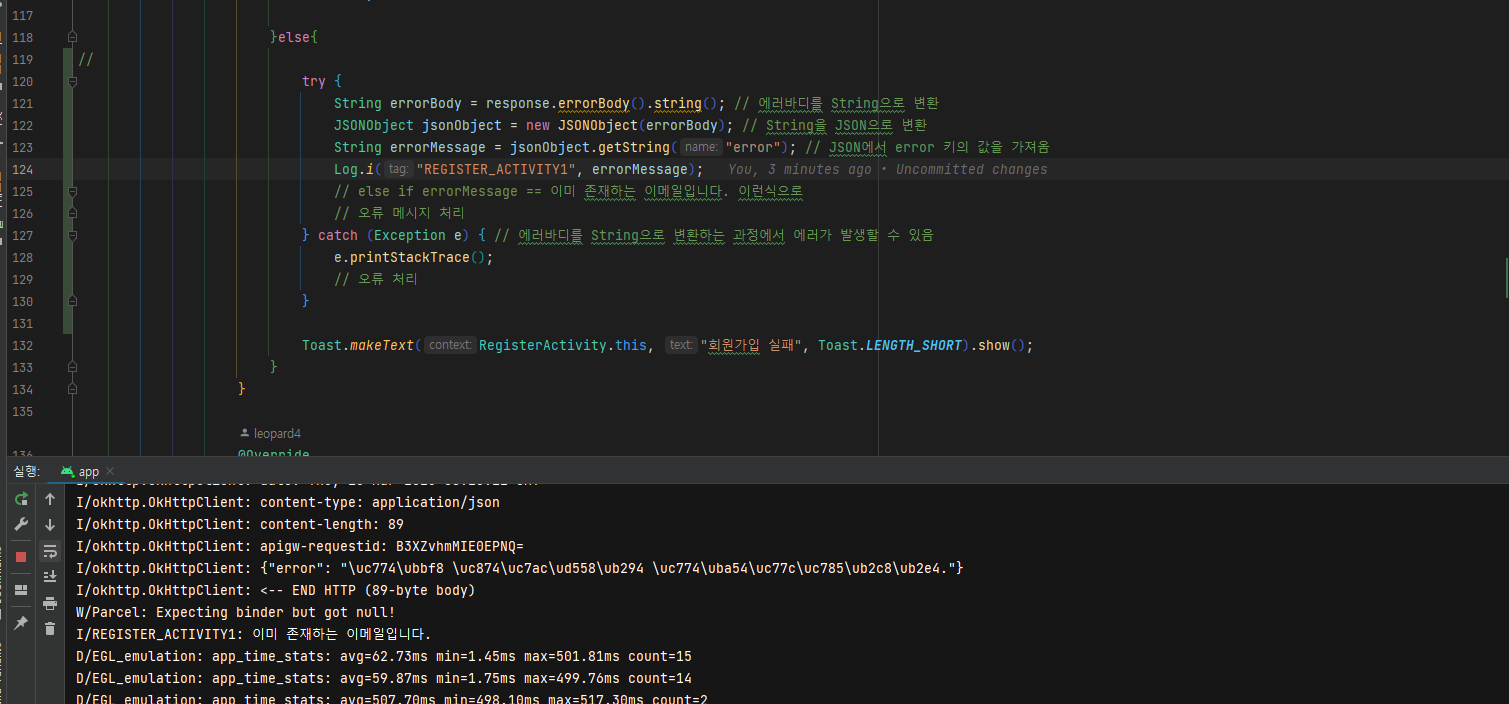 // else if errorMessage == 이미 존재하는 이메일입니다. 이런식으로