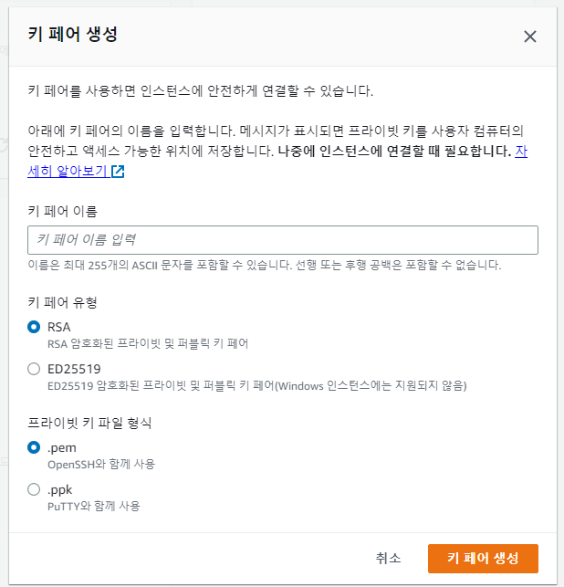 키를 잃어버리면 접속할 수가없으므로 저장을 해놓자.