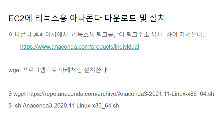 12. 파이썬을 사용하기 위해 홈 디렉토리에 anaconda를 아래와 같이 설치한다.