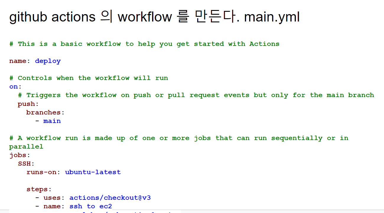 # on -> 브랜치 메인에 푸쉬할때마다.