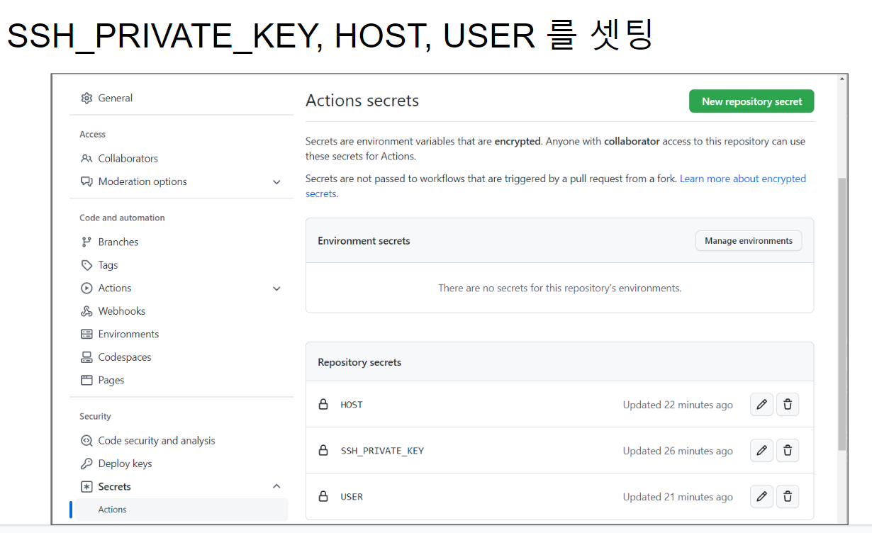 GIT_USER는 깃이름으로 . 시크릿에서 입력하면되고